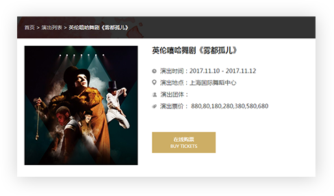 演出詳情頁面調(diào)用實(shí)時(shí)購票信息數(shù)據(jù),使瀏覽者可在線進(jìn)行演出查詢、在線選座、購票一站式操作,大大提升用戶查詢購票體驗(yàn)。