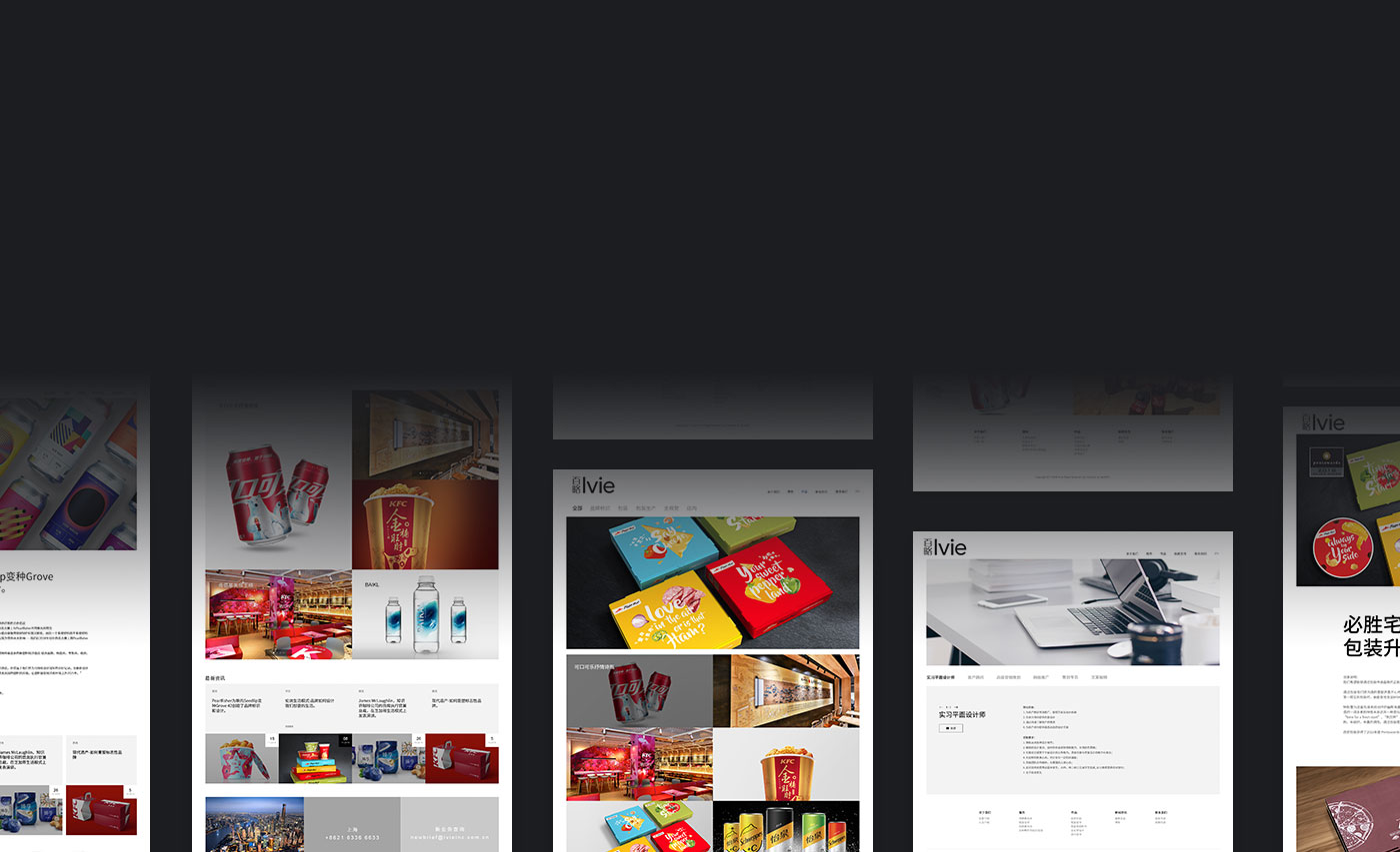 簡潔大方的網站風格營造出一個高端大氣的品牌網站形象,公司設計作品圖片為背景輪播圖,其包括耳熟能詳的KFC、必勝客、純甄等; 用lvie的超強實力征服瀏覽者,彰顯品牌的自信、強大與藝術。