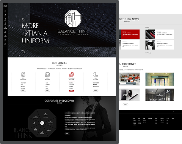 網(wǎng)站圍繞衡思制服“無微不至,盡善盡美”品牌形象進行設計,簡潔大氣又不失職業(yè)風范,展現(xiàn)公司對產(chǎn)品精益求精的設計理念。頁面加入符合行業(yè)“精工細作”特性的手繪icon設計,整體效果美觀大方,提高用戶瀏覽體驗。