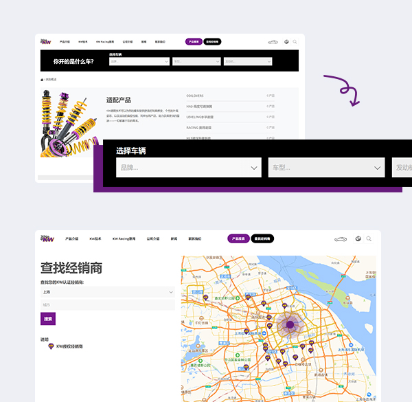 KW汽車全球性的知名度和高口碑讓KW成為個人改裝避震品牌的首選之一。作為面向全球客戶的公司,KW需要針對全球所有國家語言的多語言且統(tǒng)一風(fēng)格版本的網(wǎng)站,中文網(wǎng)站改版與建設(shè)需要契合產(chǎn)品品牌屬性及產(chǎn)品基調(diào)。邁若從設(shè)計、動畫效果、用戶體驗等場景綜合為品牌打造一站式線上展現(xiàn)平臺。