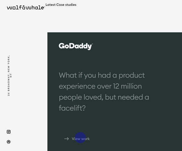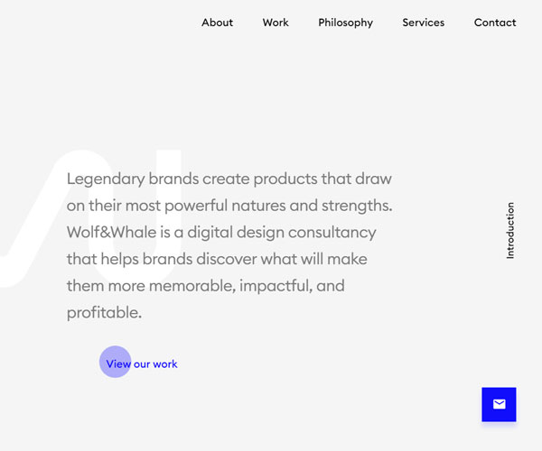 Wolfwhale是一家設(shè)計咨詢公司,網(wǎng)站通過藍(lán)色的主色調(diào)和多樣化的字體以及精細(xì)