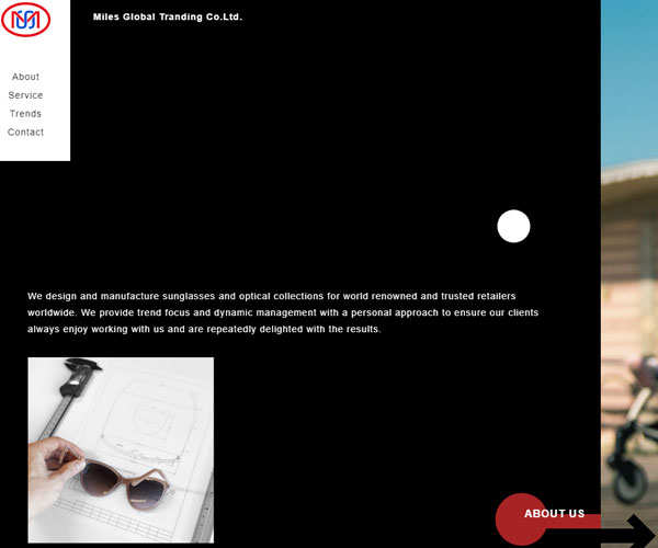 Milesltd為世界知名的零售商設計和制造太陽鏡和光學眼鏡,網站一獨特的橫屏滑動