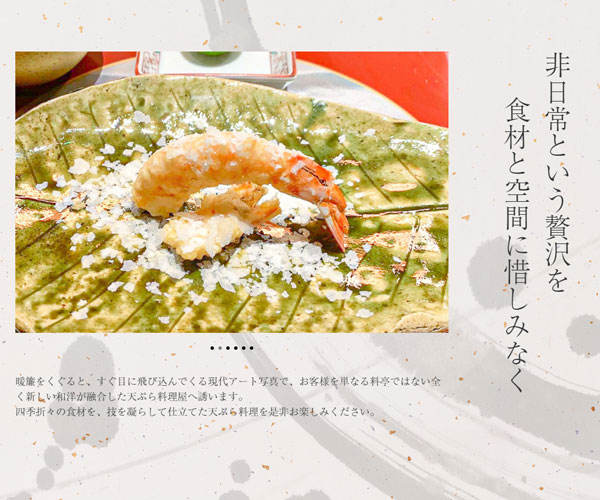 Temoura是一家傳統的日本料理店,網站通過黑白交錯的背景與精美高清的圖片建成,