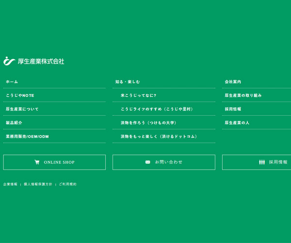 Kohseis是一家發(fā)酵制品公司,網(wǎng)站以logo健康的綠色為基礎(chǔ),簡(jiǎn)單嚴(yán)謹(jǐn)?shù)膱D文排版,