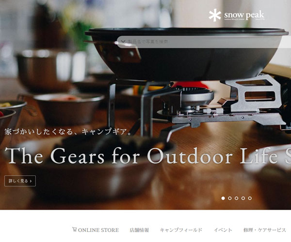 Snowpeak為客戶提供各類冬季野營相關(guān)項(xiàng)目,網(wǎng)站整體風(fēng)格較為簡潔,logo的精心設(shè)計(jì)與