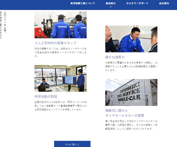 Toyoseikico作為數一數二的汽車零件加工商,網站的設計也極為“精密”,商務藍色
