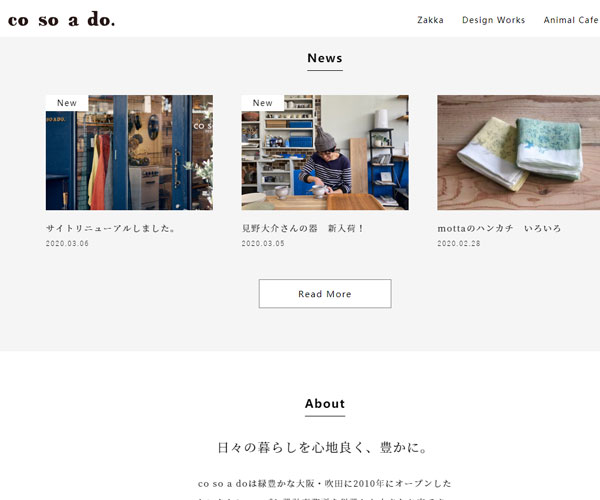 Cosoado制作不同的瓷器碗具,網站的整體建設風格較為簡潔,以嚴謹的圖文排版與簡單的