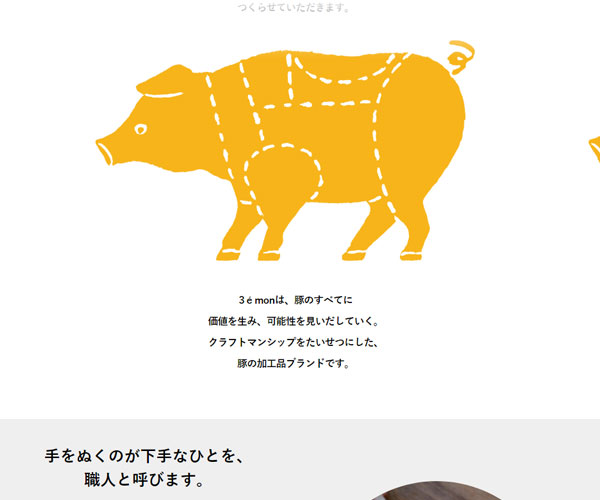 3-e-mon是一座森林牧場,官網(wǎng)的設計以精美的圖片與精心設計的字體以及插畫