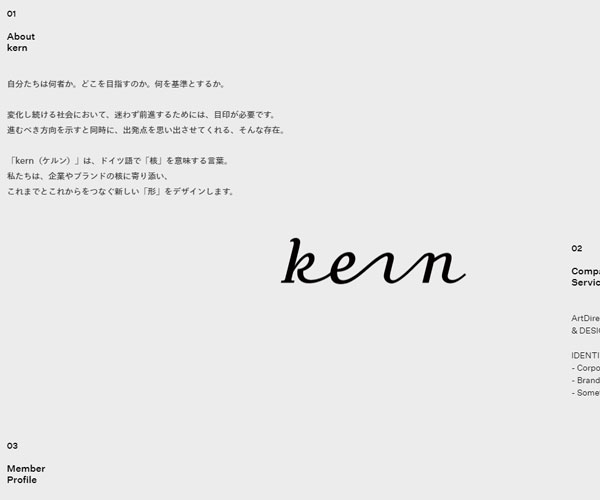 Kern是一個提供核心設計平臺的網站,低沉的灰色色調,獨特的文字排版構思,