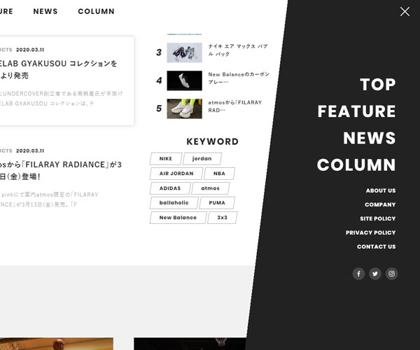 Flymag做一切籃球類相關新聞,網站的建設較為傳統,導航欄的切塊棱角設計與字體選擇