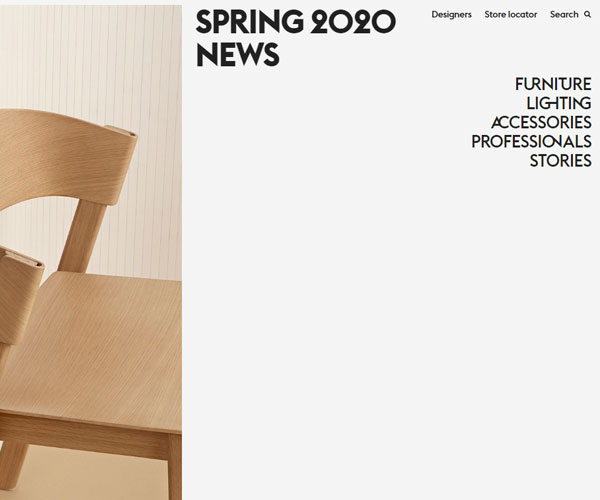 Muuto制作精美的木質(zhì)椅子,網(wǎng)站以精心制作的3D模型與動(dòng)畫開啟了整個(gè)網(wǎng)站高端的格調(diào),